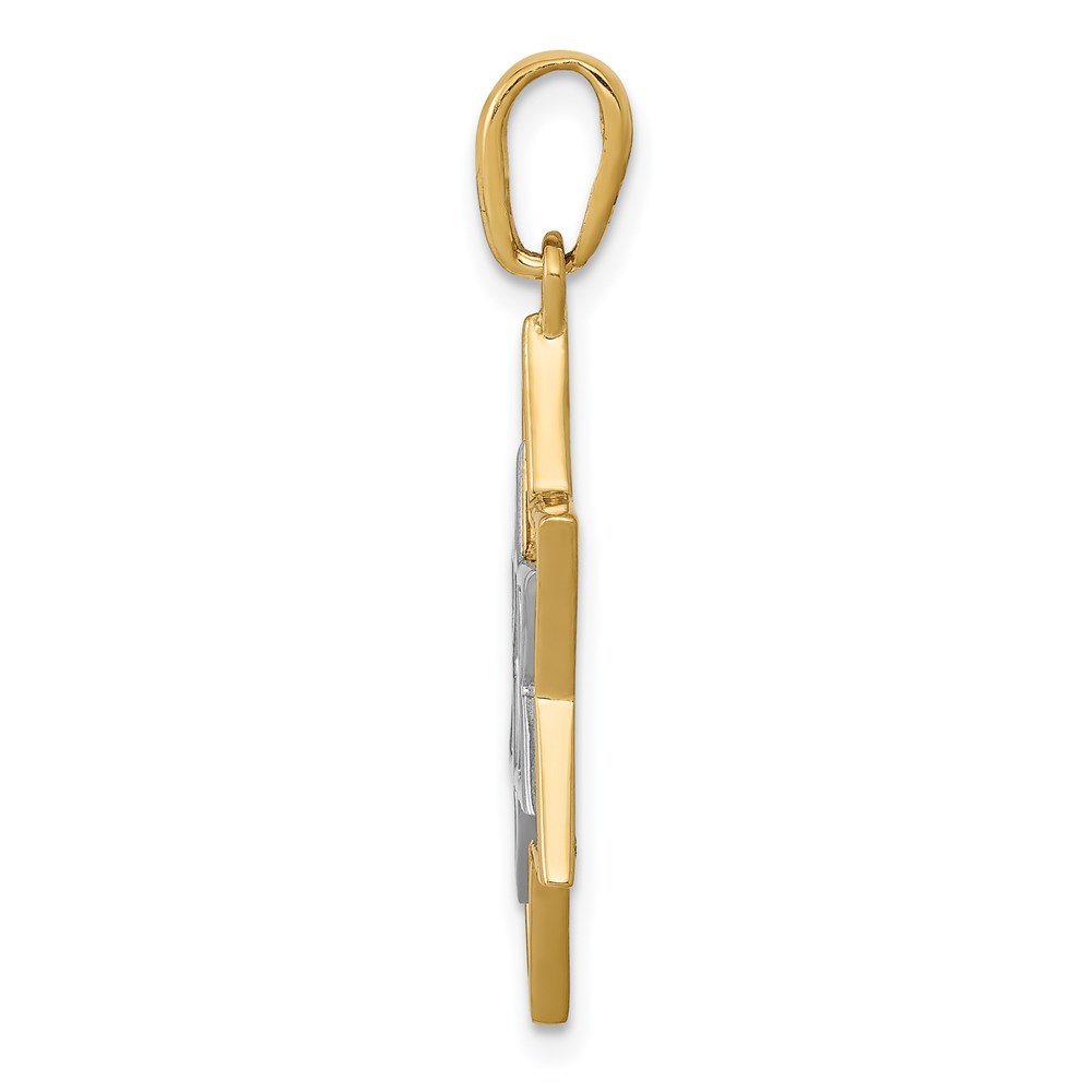 14K and White Rhodium Solid Mesh Star Of David Charm