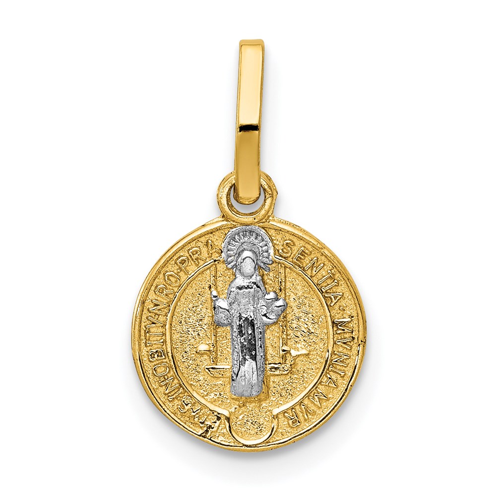 14k and White Rhodium Solid St. Benedict Medal Round Pendant