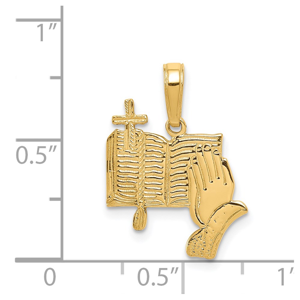 14K Red Enamel Praying Hands and Cross Oval Pendant