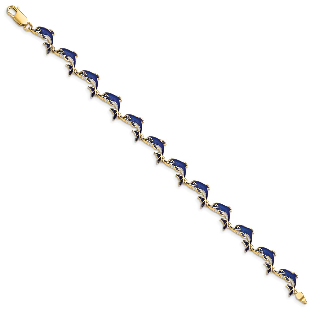 14k Blue Enameled Dolphin 7.25 inch Bracelet