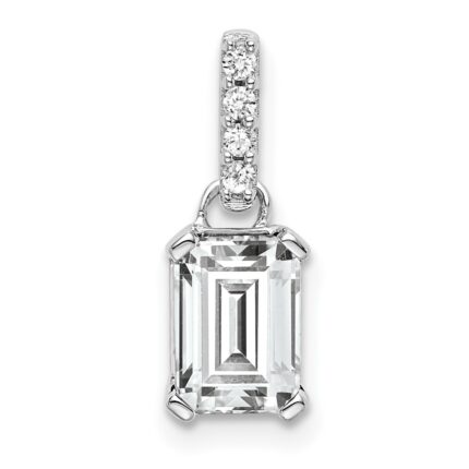 Sterling Silver Rhodium-plated White Topaz and Diamond Pendant