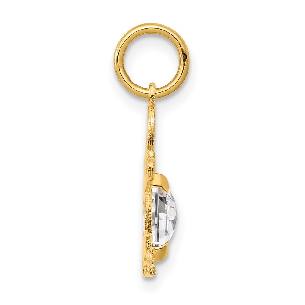 14K Boy Charm 6×4 Oval Genuine White Topaz-April