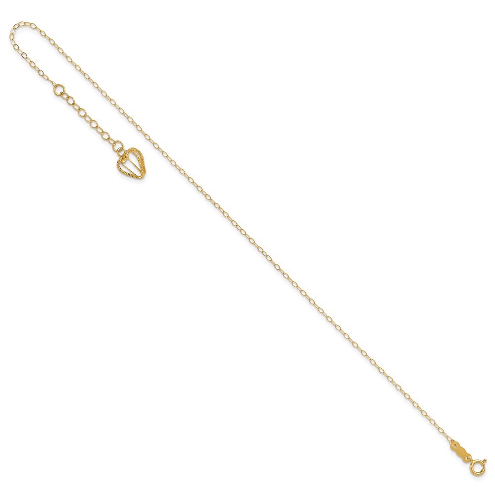 14k Two-tone Textured and Polished Open Heart Plus Extender – Total Anklet