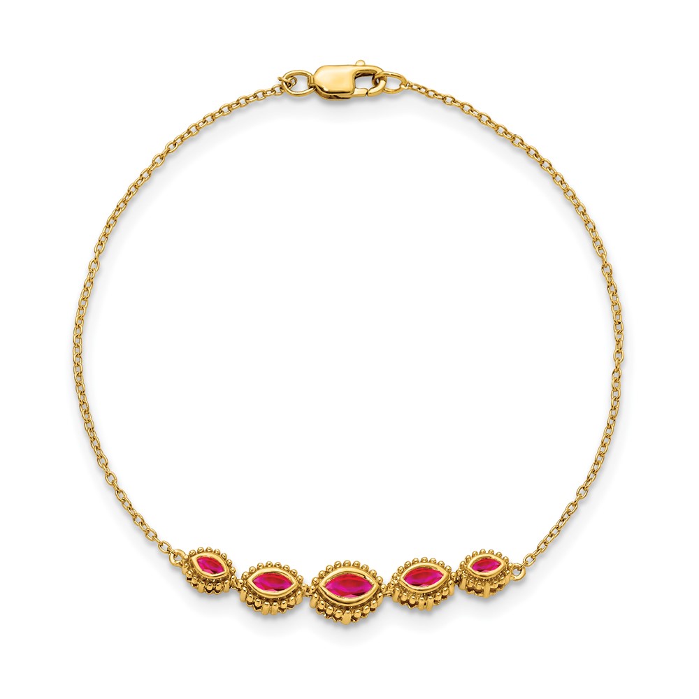 14k Complete 5-Stone Bezel-set Marquise Ruby and Chain 7 inch Bracelet