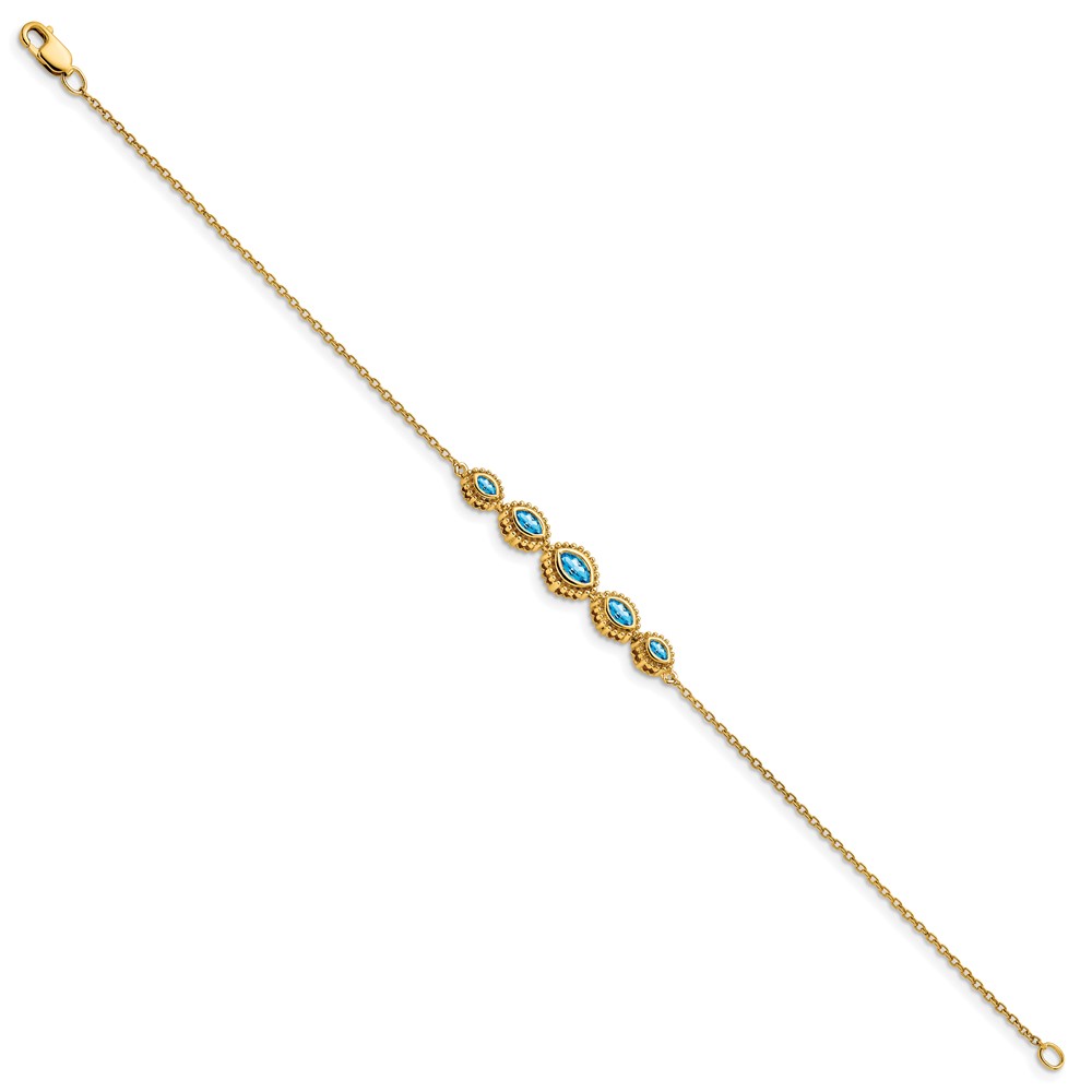 14k Complete 5-Stone Bezel-set Marquise Swiss Blue Topaz and Chain 7 inch Bracelet