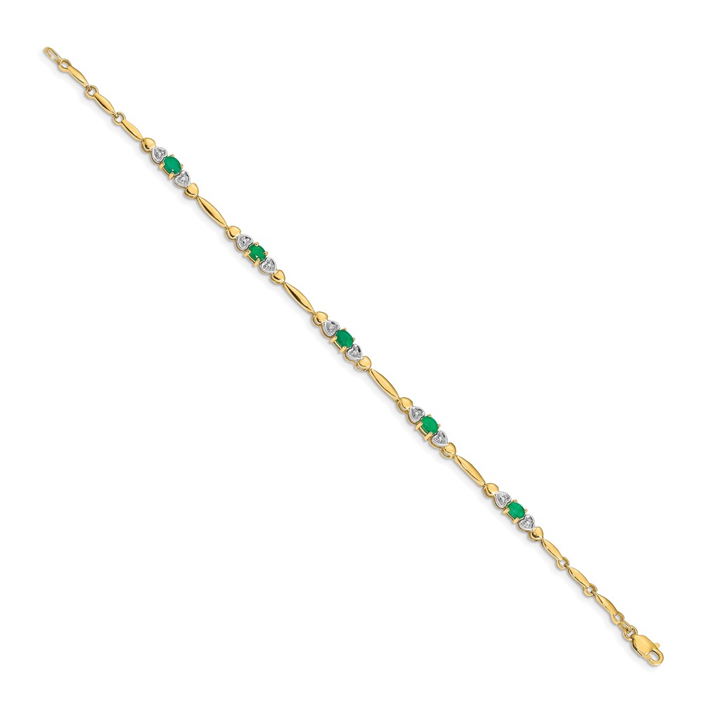 14k Complete Diamond and Oval Emerald Heart Design 7 inch Bracelet