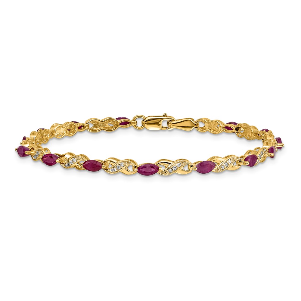 14k Complete Diamond and Oval Ruby Infinity 7.25 inch Bracelet