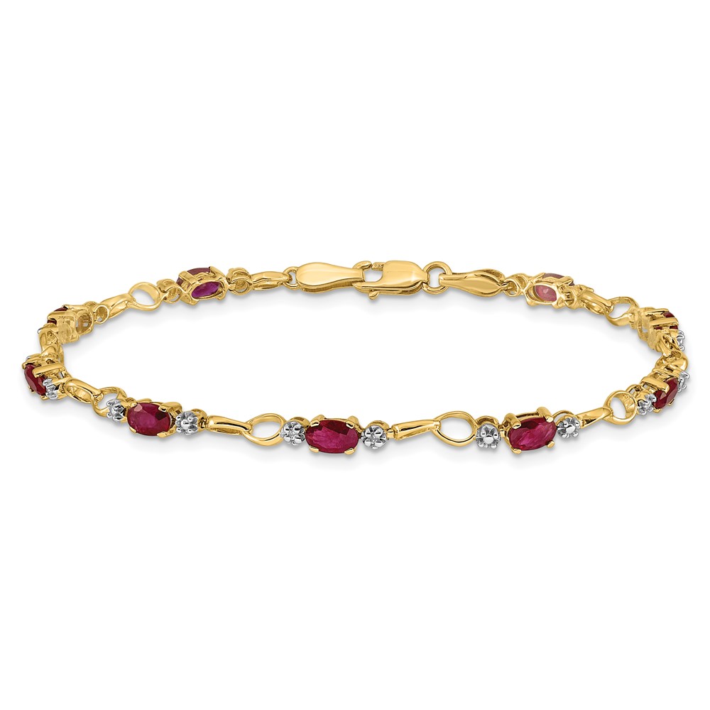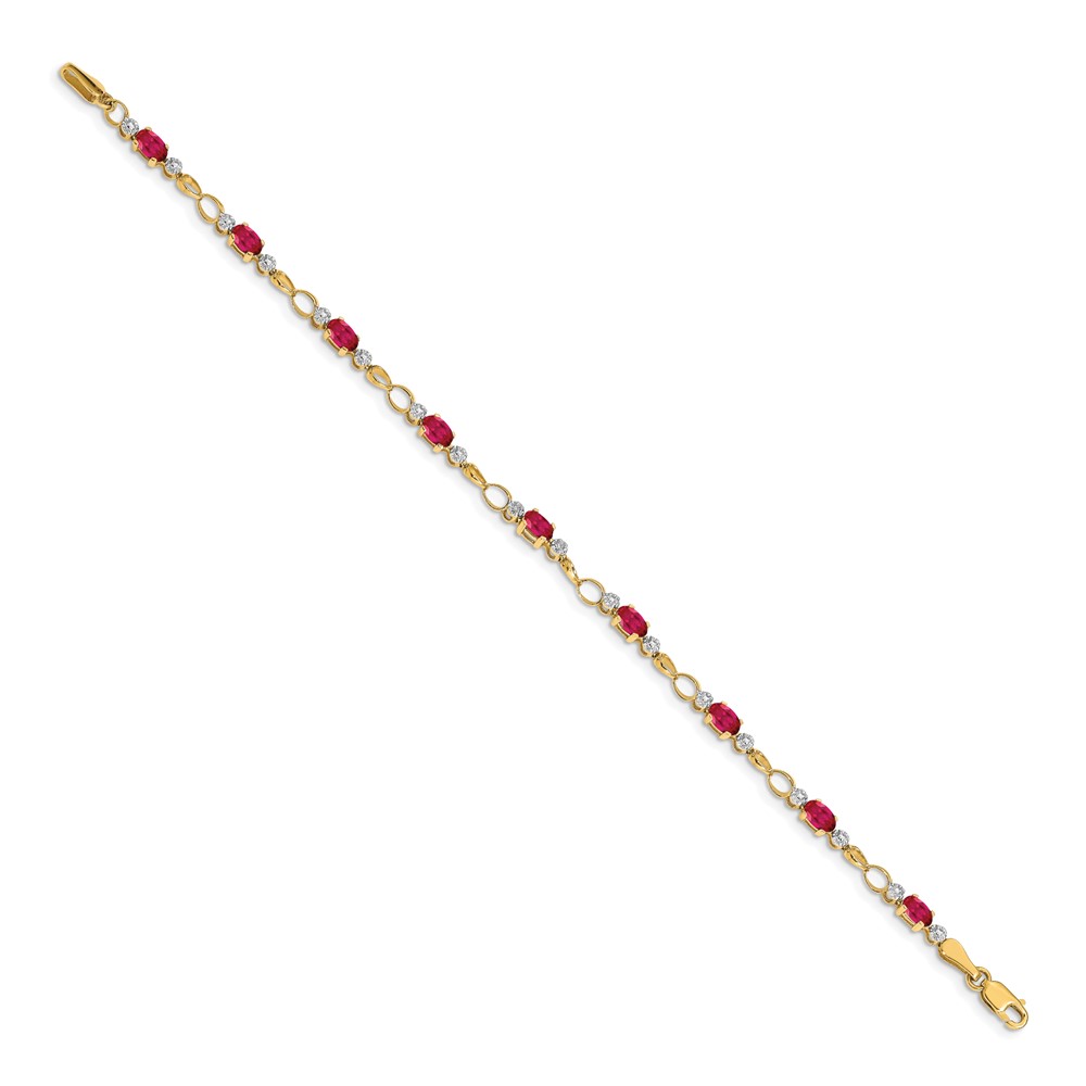 14k Complete Diamond and Oval Ruby Open Link 7 inch Bracelet