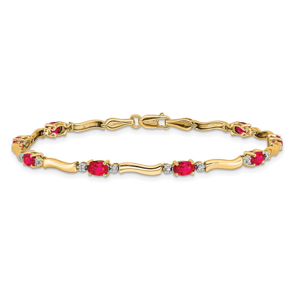 14k Complete Diamond and Oval Ruby Wavy Link 7 inch Bracelet