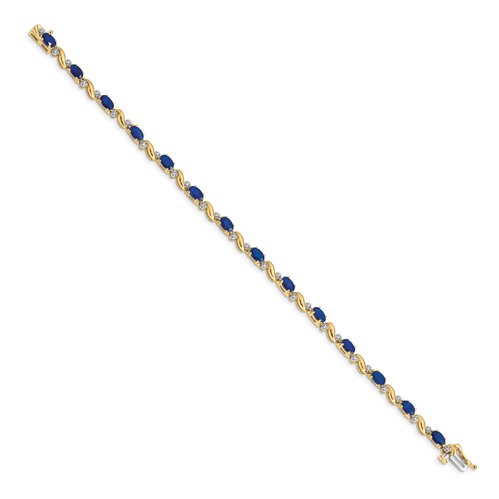 14k Complete Diamond and Oval Sapphire Curved Link 7 inch Bracelet