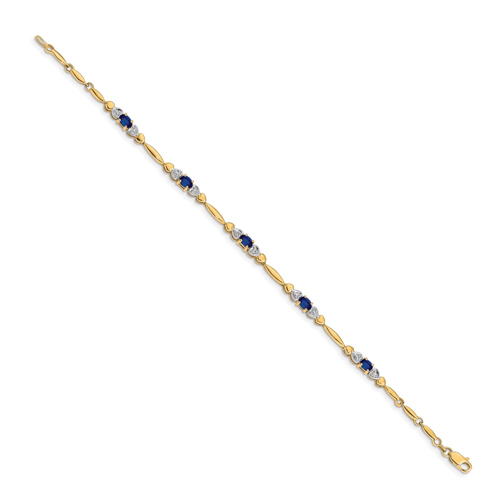 14k Complete Diamond and Oval Sapphire Heart Design 7 inch Bracelet