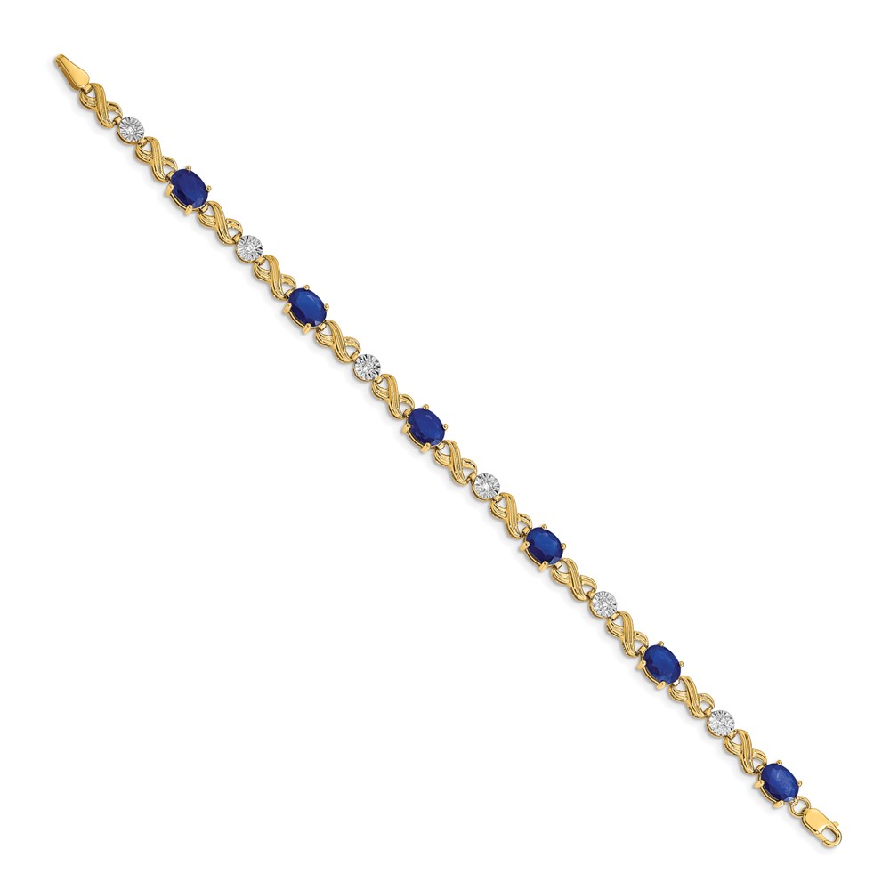 14k Complete Diamond and Oval Sapphire Infinity Link 7.25 inch Bracelet