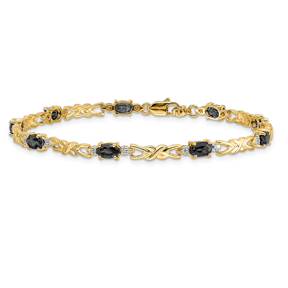 14k Complete Diamond and Oval Sapphire X-design 7.25 inch Bracelet