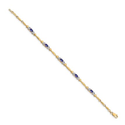 14k Complete Oval Amethyst and Sky Blue Topaz Bezel-set 7 inch Bracelet