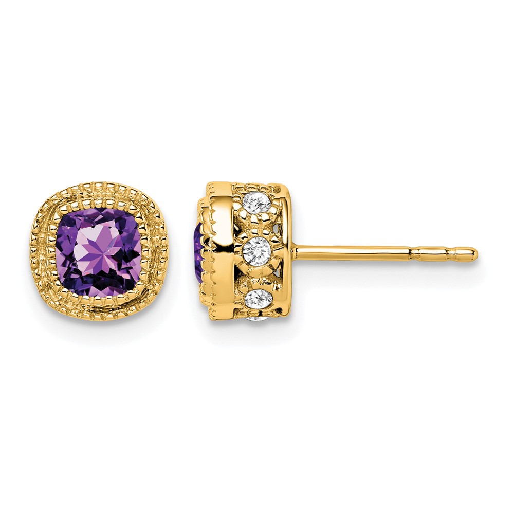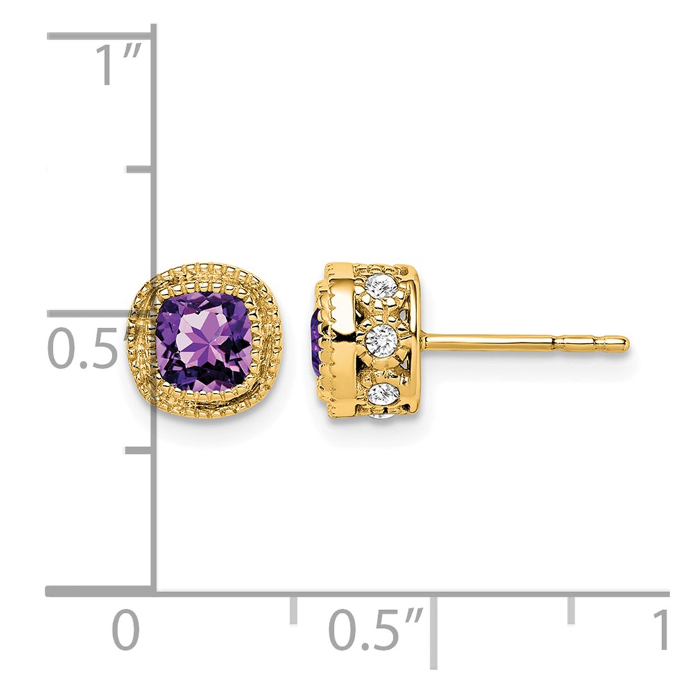 14k Cushion Amethyst and Diamond Earrings