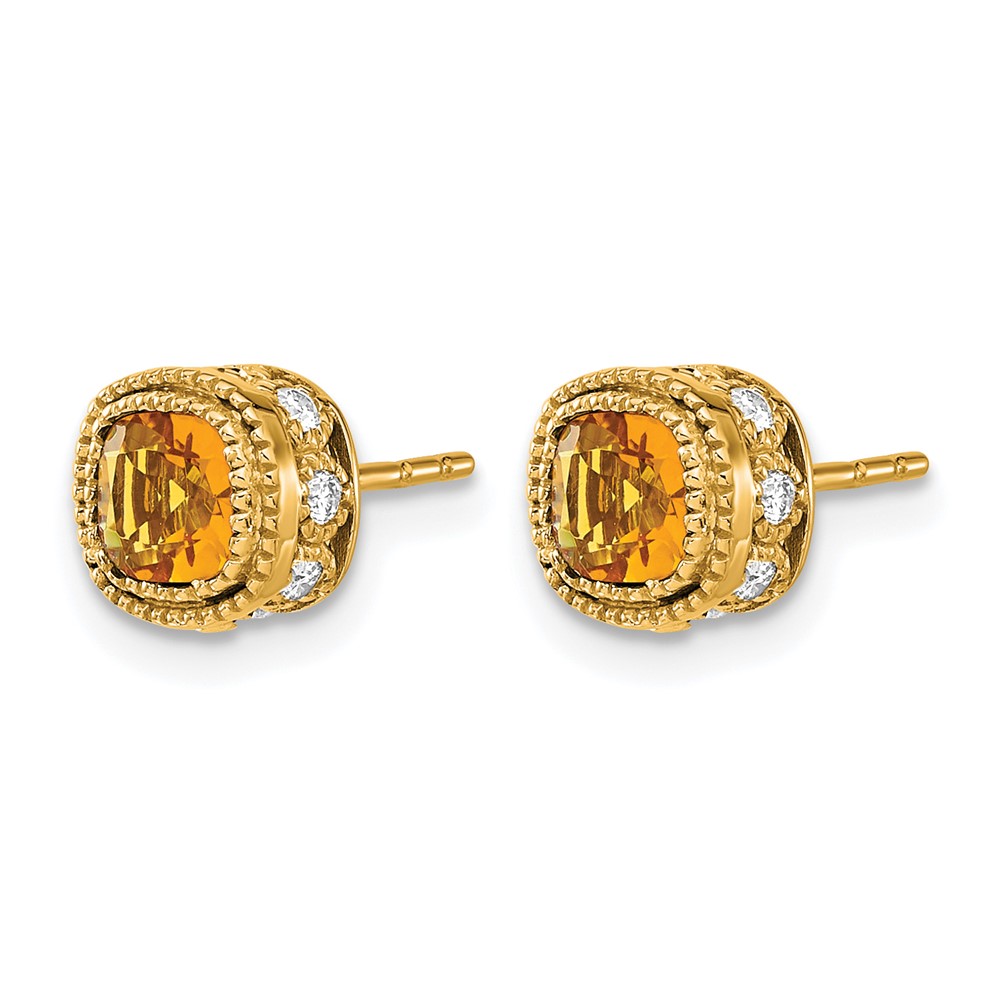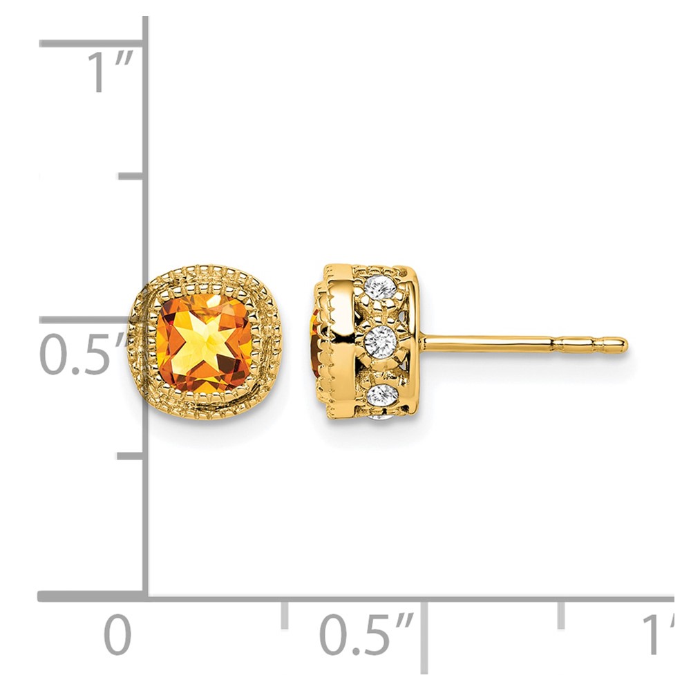 14k Cushion Citrine and Diamond Earrings
