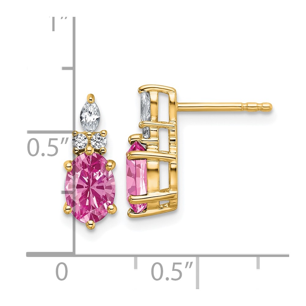 14k Diamond and 7×5 Oval October/Lab Created Pink Sapphire Post Earrings