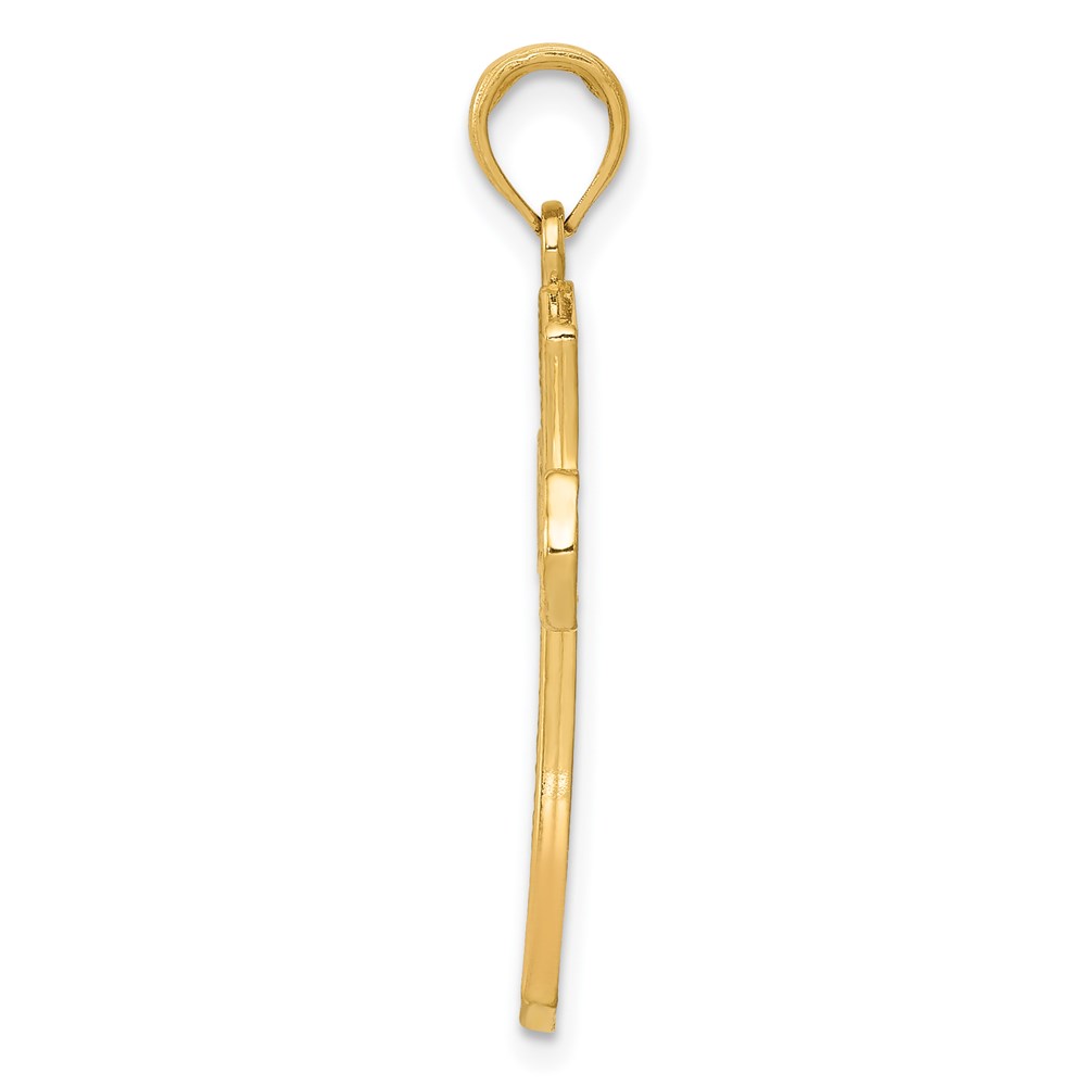 14K and White Rhodium Budded Yellow Cross Frame Pendant