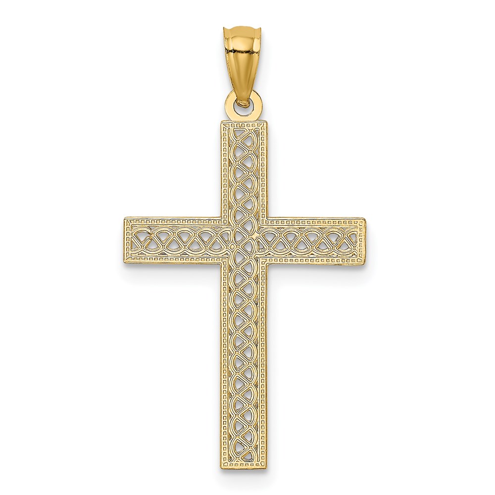 14K White Gold Polished 1/5 carat Diamond Framed Dangle Cross Pendant