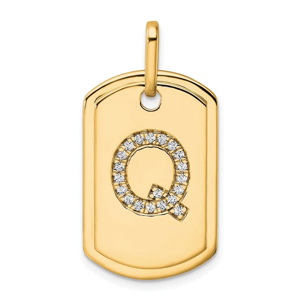 14K White Gold Diamond Initial Q Dog Tag Charm