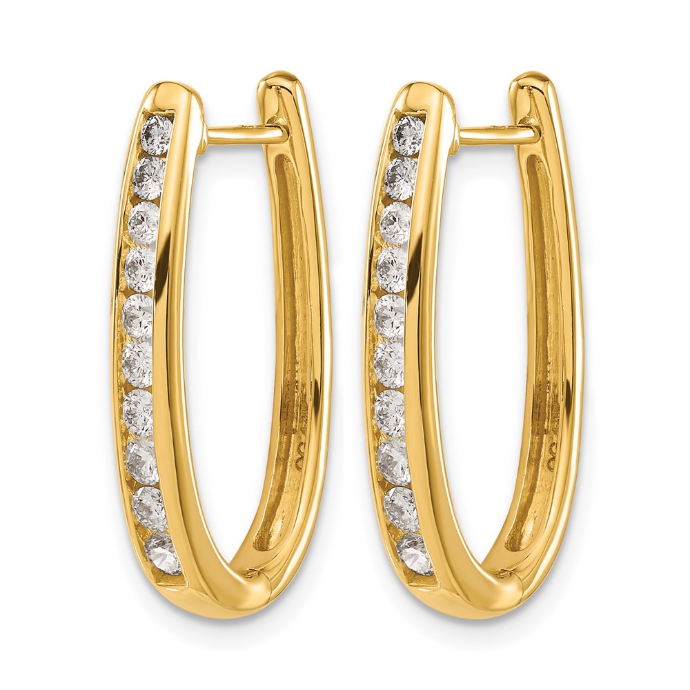 14k White Gold Diamond Oval Hinged Hoop Earrings