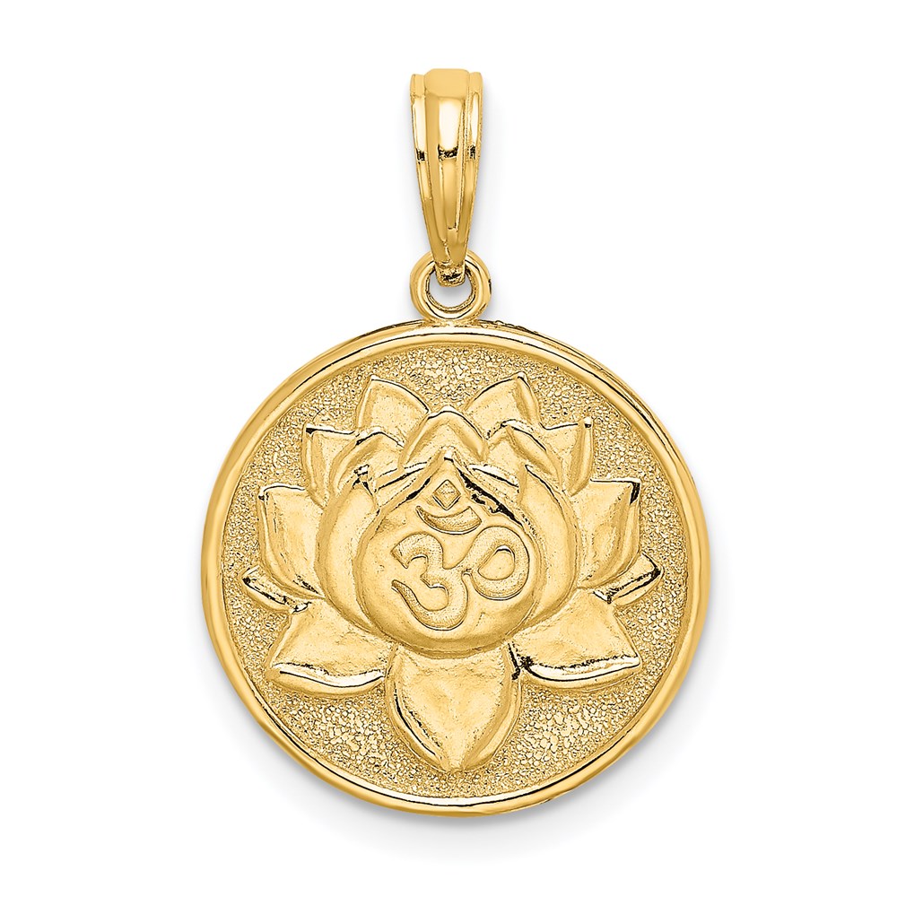 14K Enameled Om Symbol with Lotus Flower on Reverse Charm