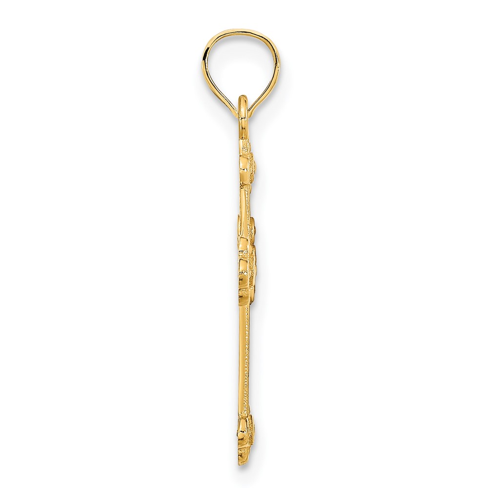 14k and White Rhodium 1/10 carat Diamond Fleur de Lis Cross Pendant