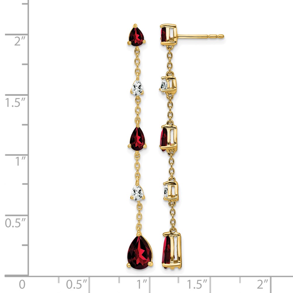 14k White Gold Garnet and White Topaz Dangle Earrings