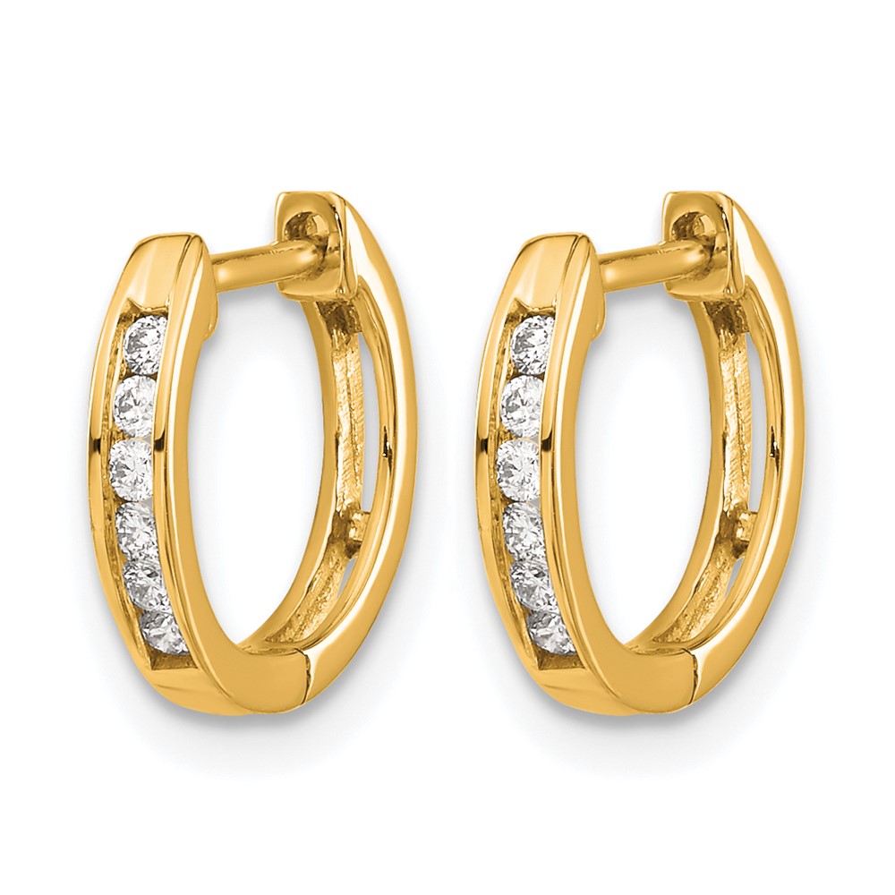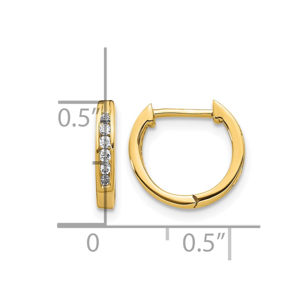 14k Gold Polished Diamond Hinged Hoop Earrings