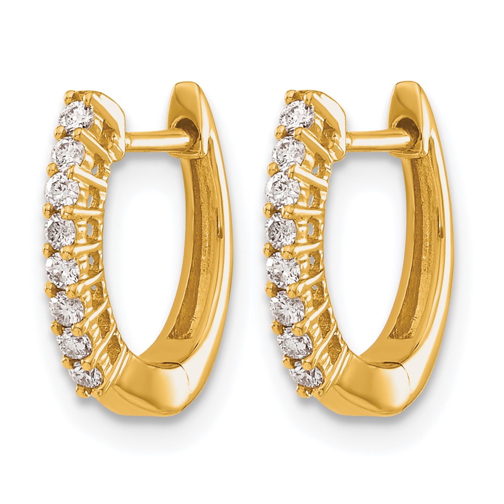 14k Gold Polished Diamond Hinged Hoop Earrings
