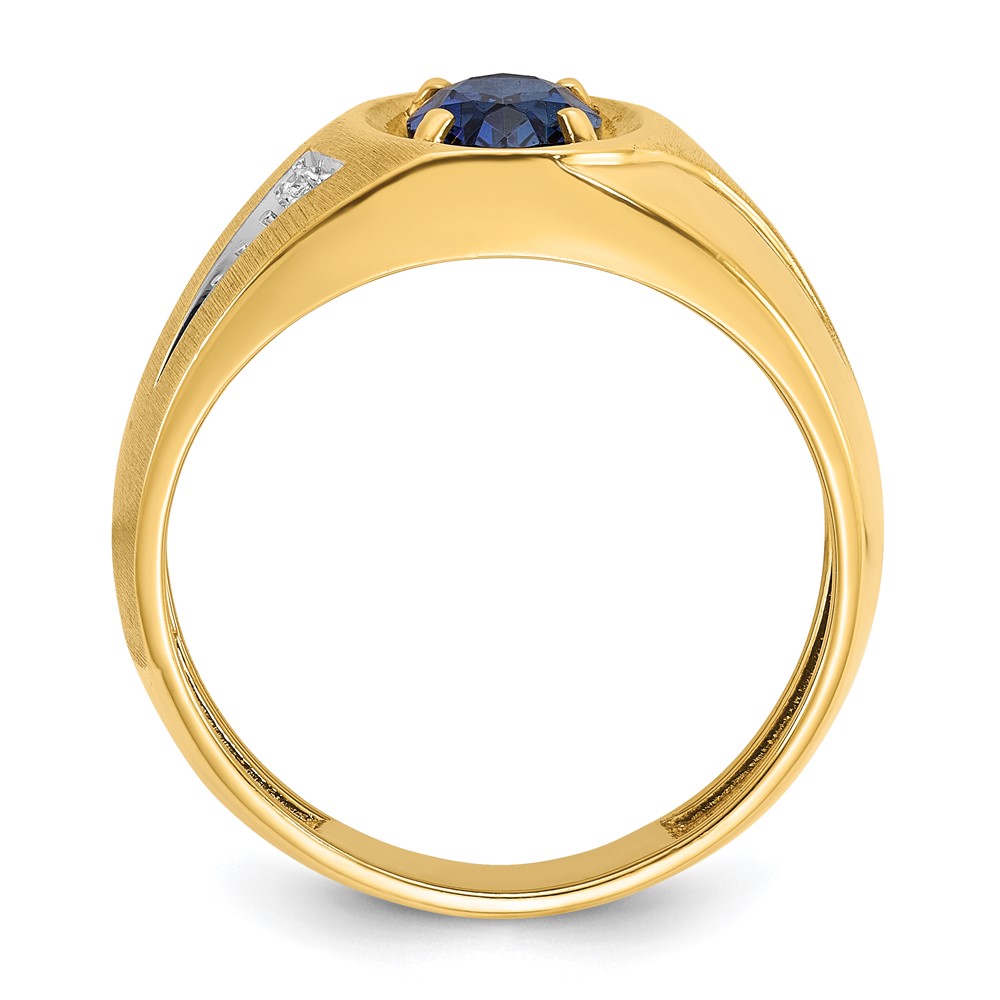 14k IBGoodman Men's Created Sapphire and Diamond Satin Complete Ring
