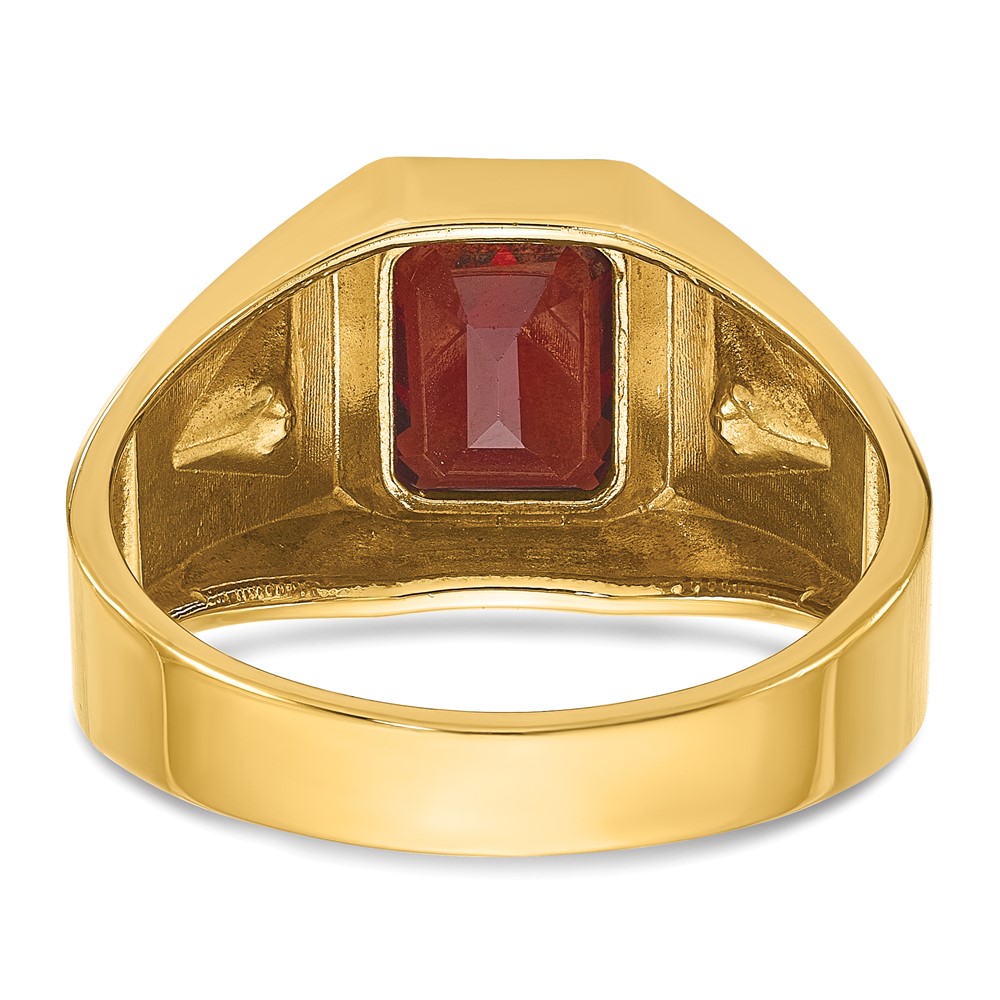 14k IBGoodman Men’s Polished and Satin Garnet and 1/15 carat Diamond Complete Ring
