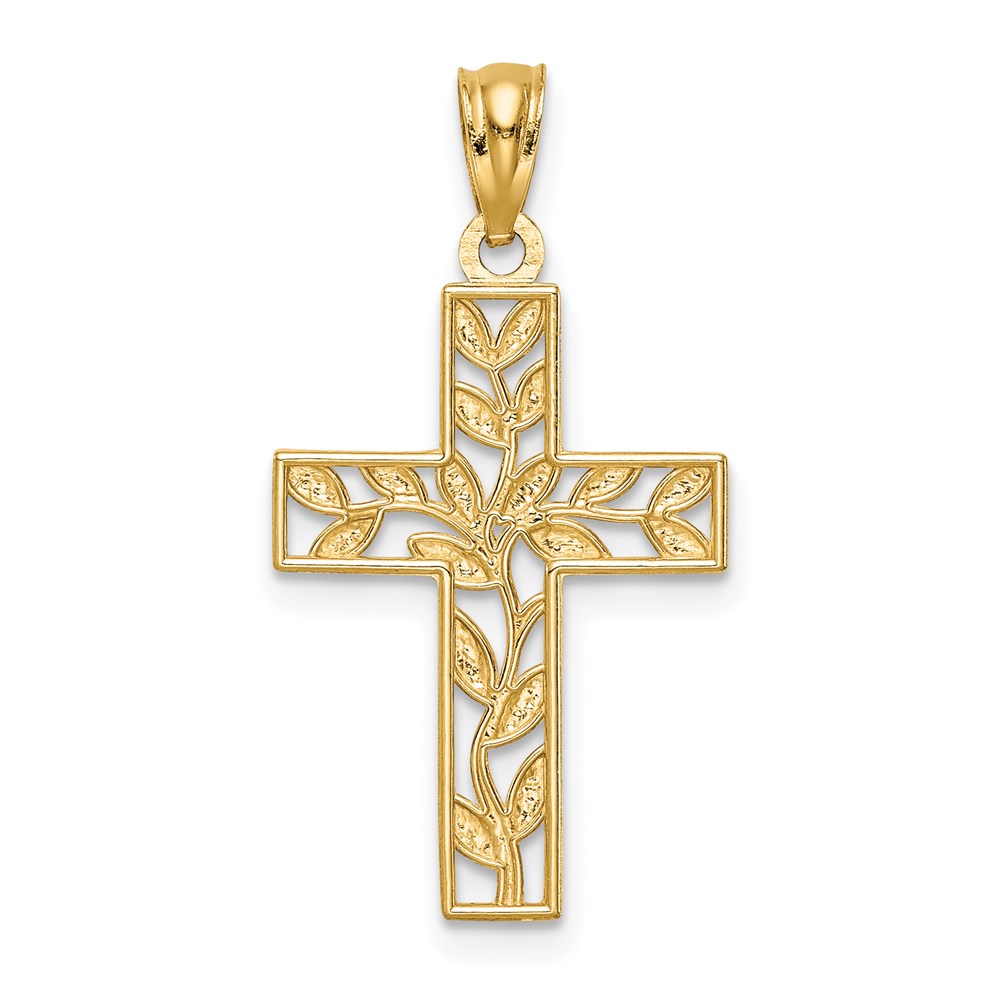 14K White Gold Polished 1/5 carat Diamond Framed Dangle Cross Pendant