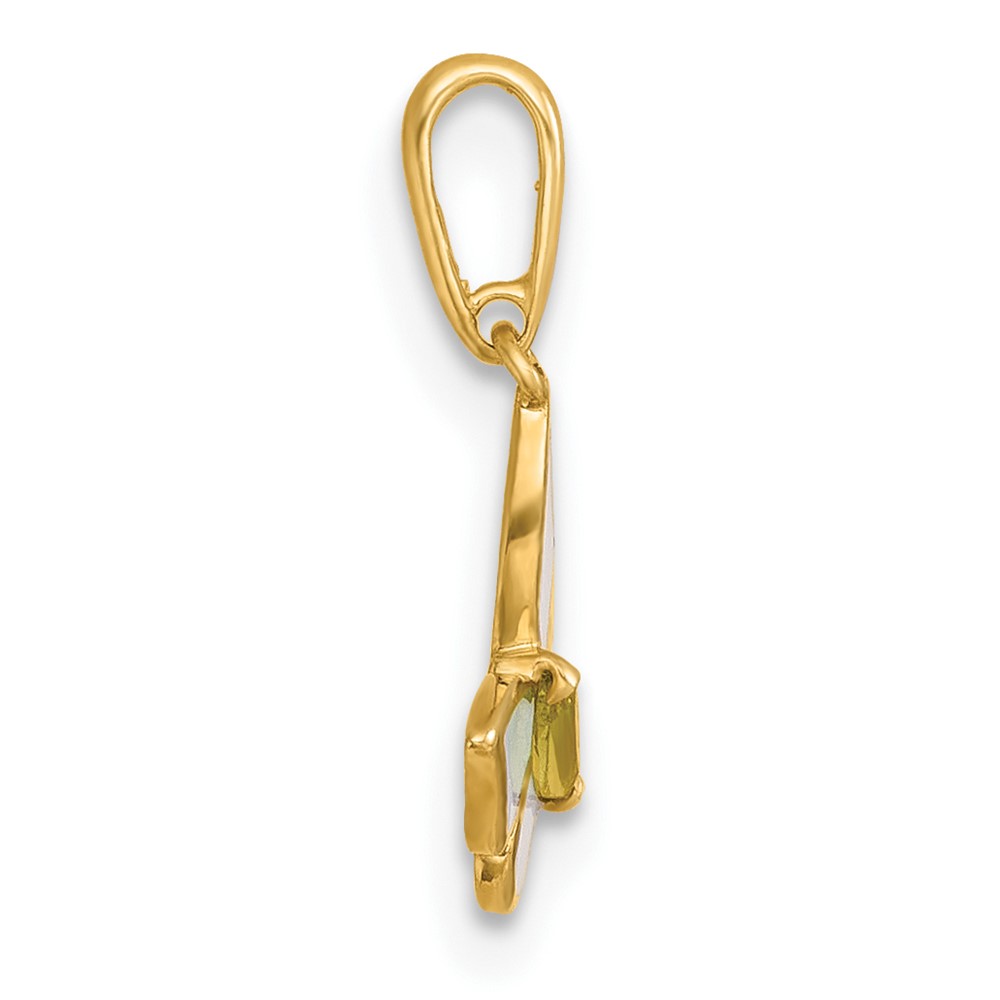 14k Madi K Polished White Enamel and Green CZ Butterfly Childrens Charm / Pendant
