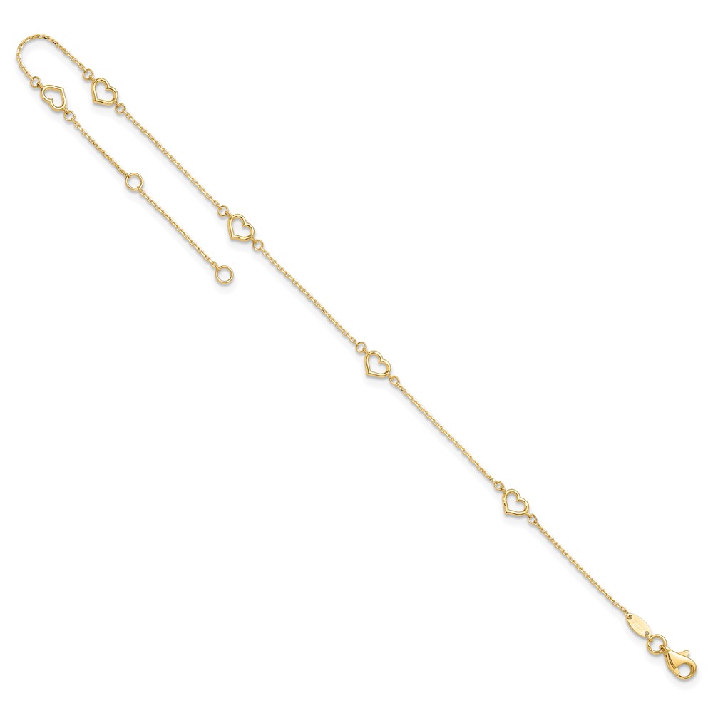 14k Polished Cut-out Hearts and Diamond-cut Beads Plus Extender – Total Anklet
