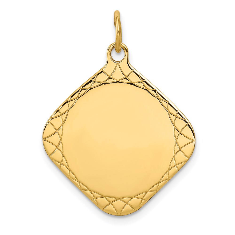14k Patterned .018 Gauge Diamond-Shaped Engravable 24x21mm Disc Charm