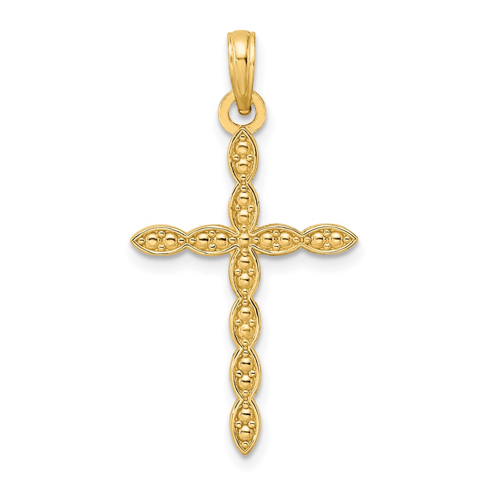 14K Polished and Beaded Design Cross Pendant