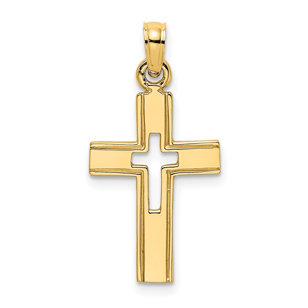 14K Polished and Cut-Out Cross Charm