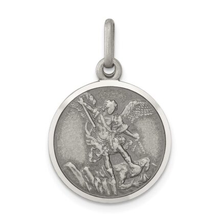 14k Polished and Satin Hollow Small St Michael Medal Badge Pendant