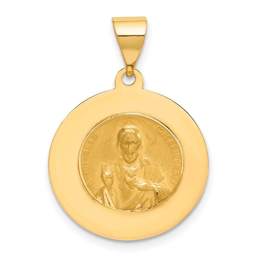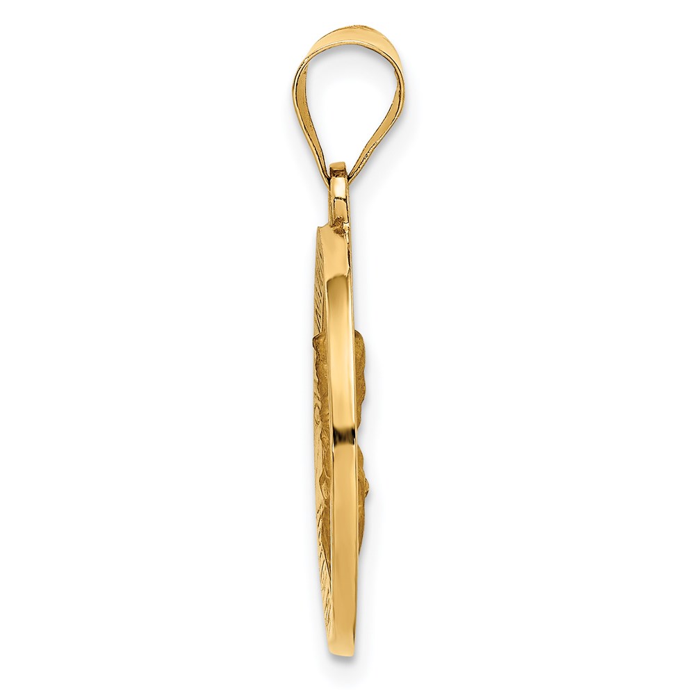 14K Polished and Satin Hollow Spanish Oh Reina Del Santo Escapulario Medal Reversible Round Pendant
