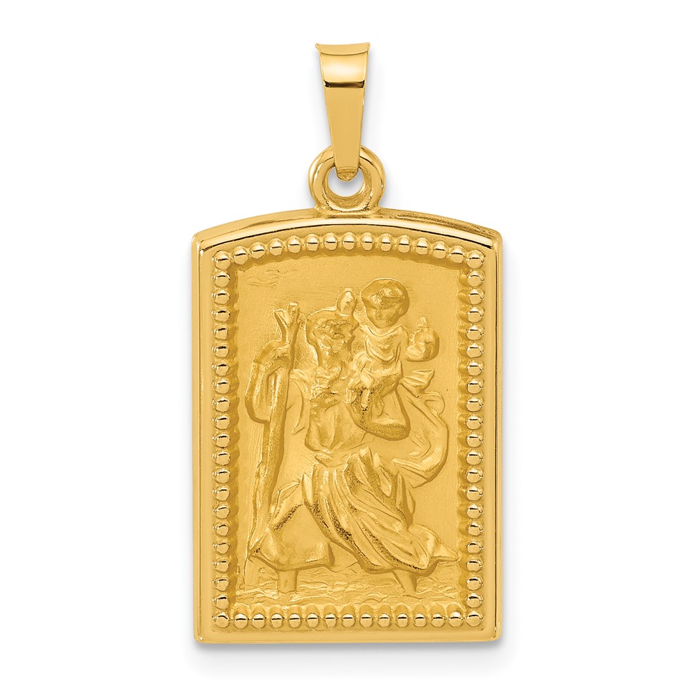 14K Polished and Satin Rectangular Hollow St. Christopher Medal Pendant