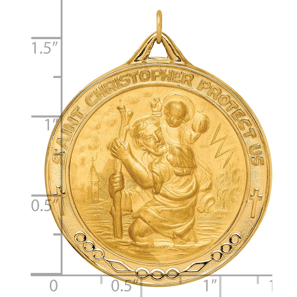 14k Polished and Satin Solid Extra Large St. Christopher Medal Round Pendant