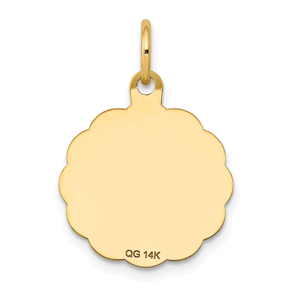 14k Polished and Satin Solid HOLY COMMUNION Scalloped Edge Round Disc Charm