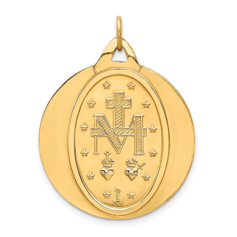 14k Polished and Satin Solid Large Miraculous Medal Round Pendant