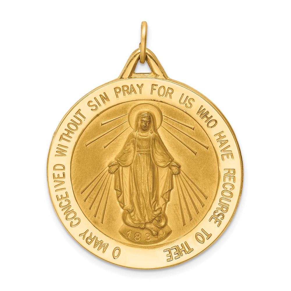 14k Polished and Satin Solid Large Miraculous Medal Round Pendant