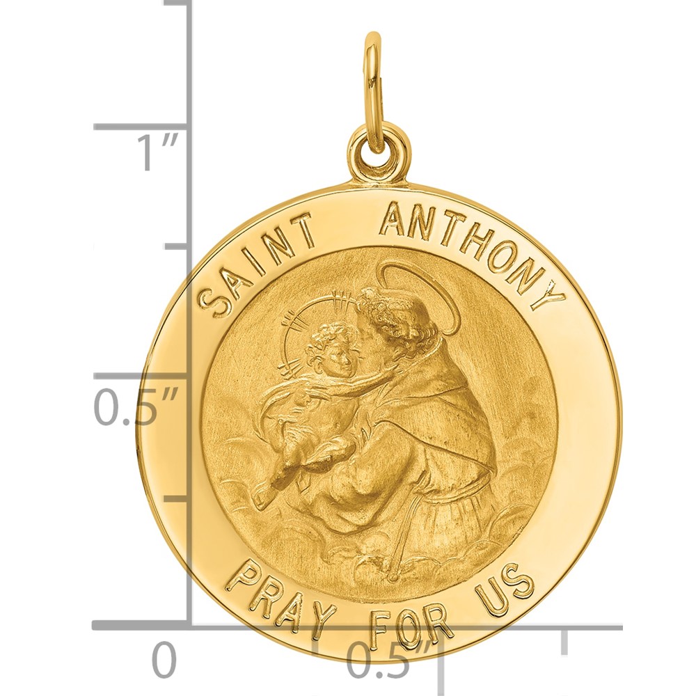 14k Polished and Satin Solid Large Round St. Anthony Medal Pendant