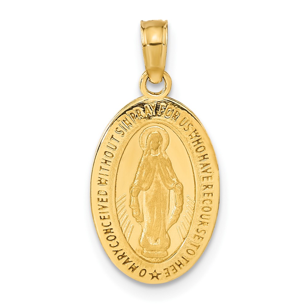 14k Polished and Satin Solid Miraculous Medal Oval Pendant