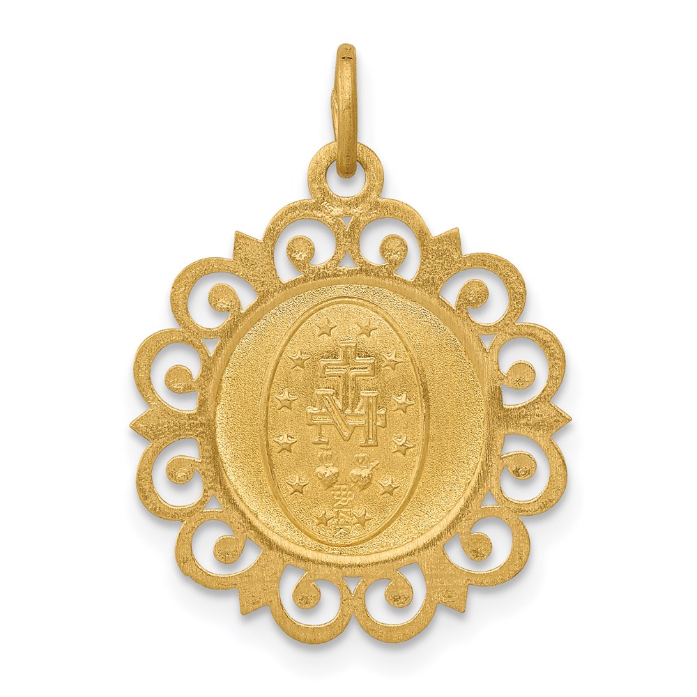 14k Polished and Satin Solid Miraculous Medal with Scallop Frame Round Charm