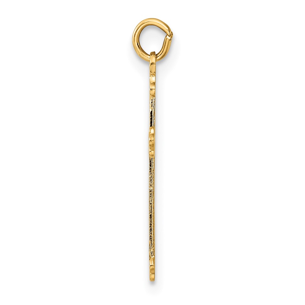 14k Polished and Textured Solid Diamond Shape Center Cross Pendant