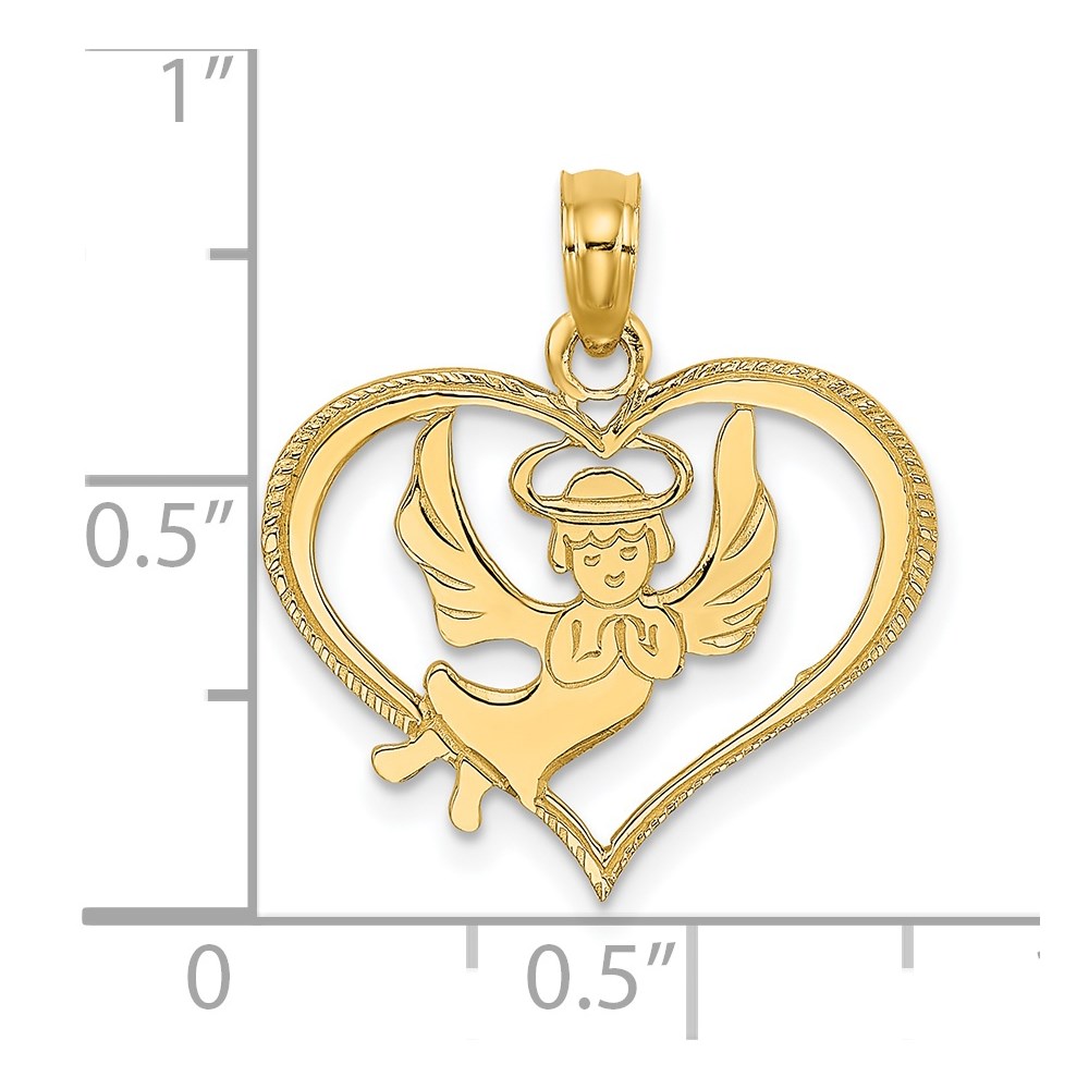 14K Polished Angel In Heart Charm